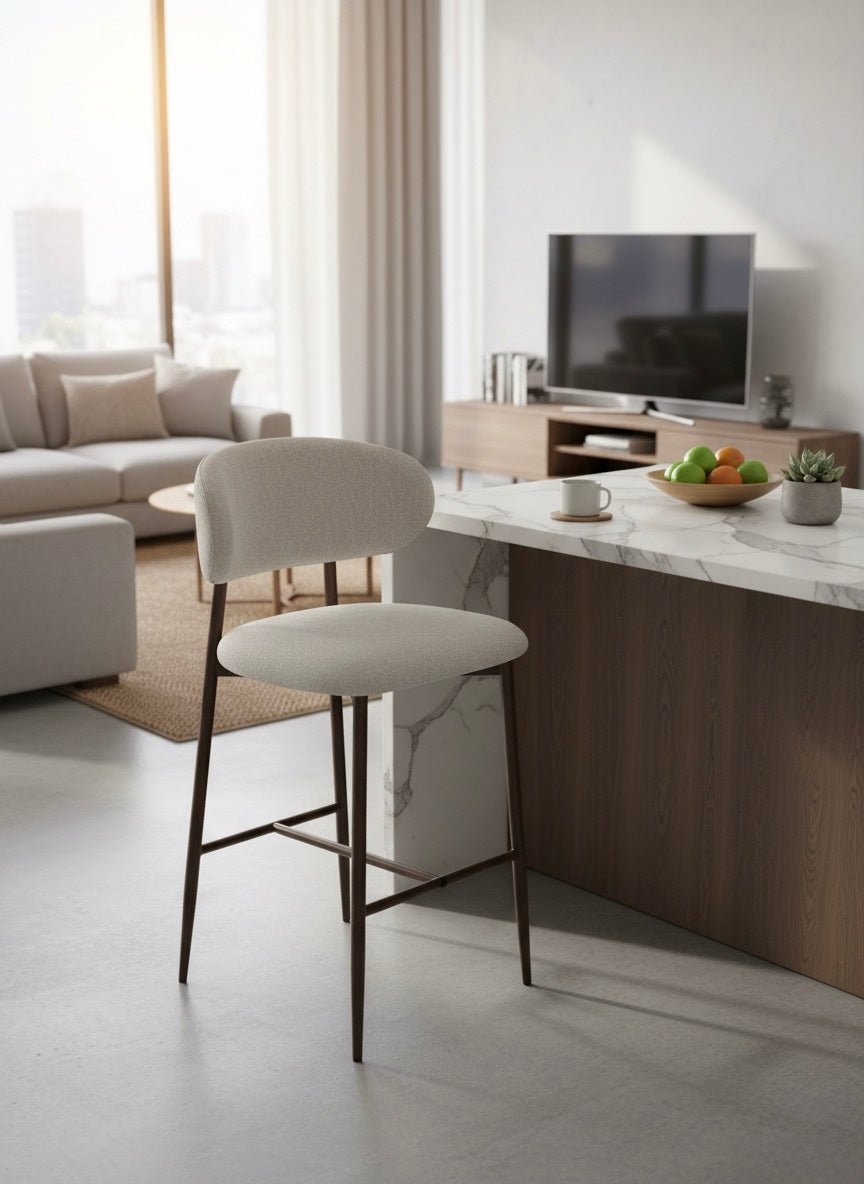 Modern Upholstered Barstool with Brown Metal Base