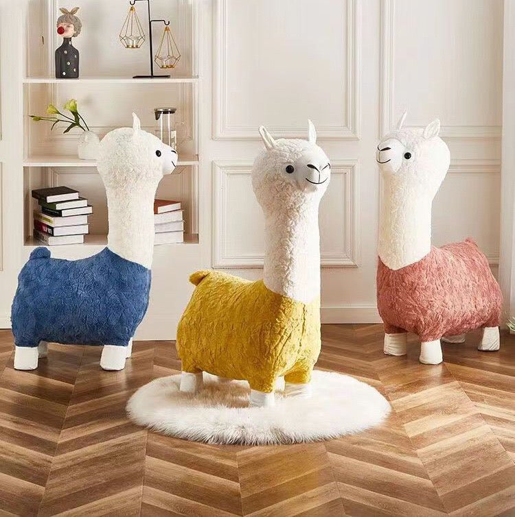 There are a lot of choices out there, like the ones from Shaghaf Home. We sell lovely stools with pictures of alpacas and comfy chairs in bright colors like pink. These kinds of furniture can make the room more fun for kids.