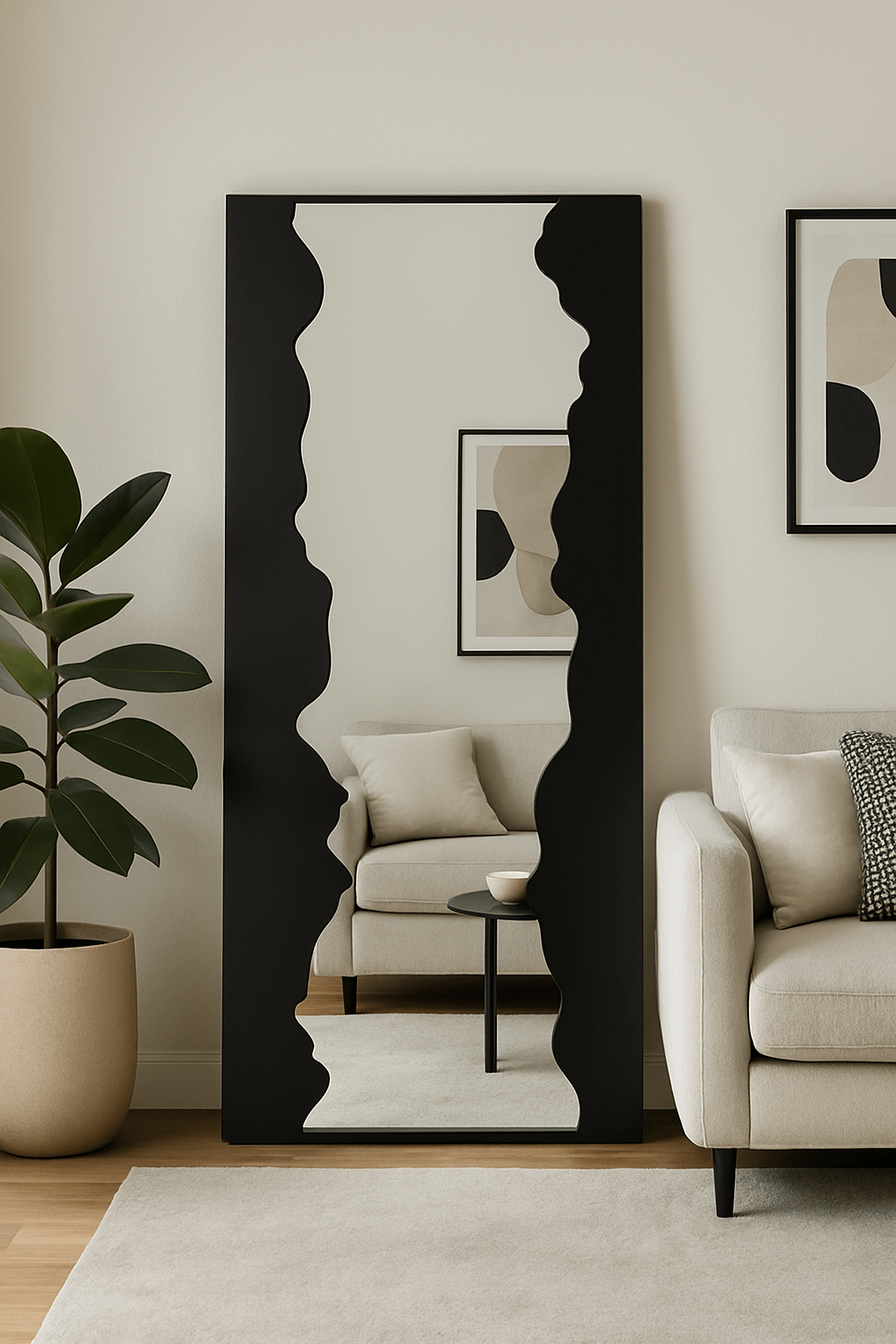 Check out this Black Wavy Full-Length Mirror – Solid Wood Frame