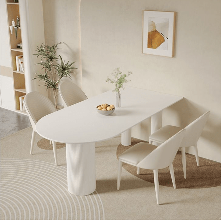 A white dining table works beautifully in a monochrome dining area. It provides a clean foundation while allowing black accents through chairs, lighting, or tableware. This balance creates harmony and ensures the dining space feels timeless and inviting.