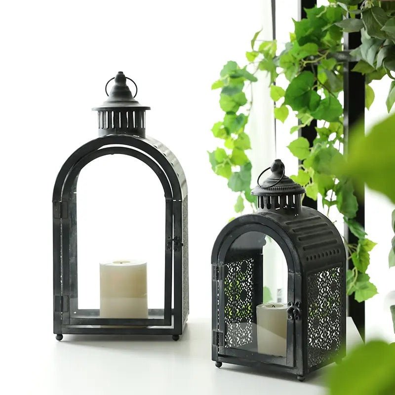 Candle lanterns in black and white add charm and warmth to interiors. They bring a soft glow that complements the clean lines of monochrome spaces, creating a calm and welcoming mood.