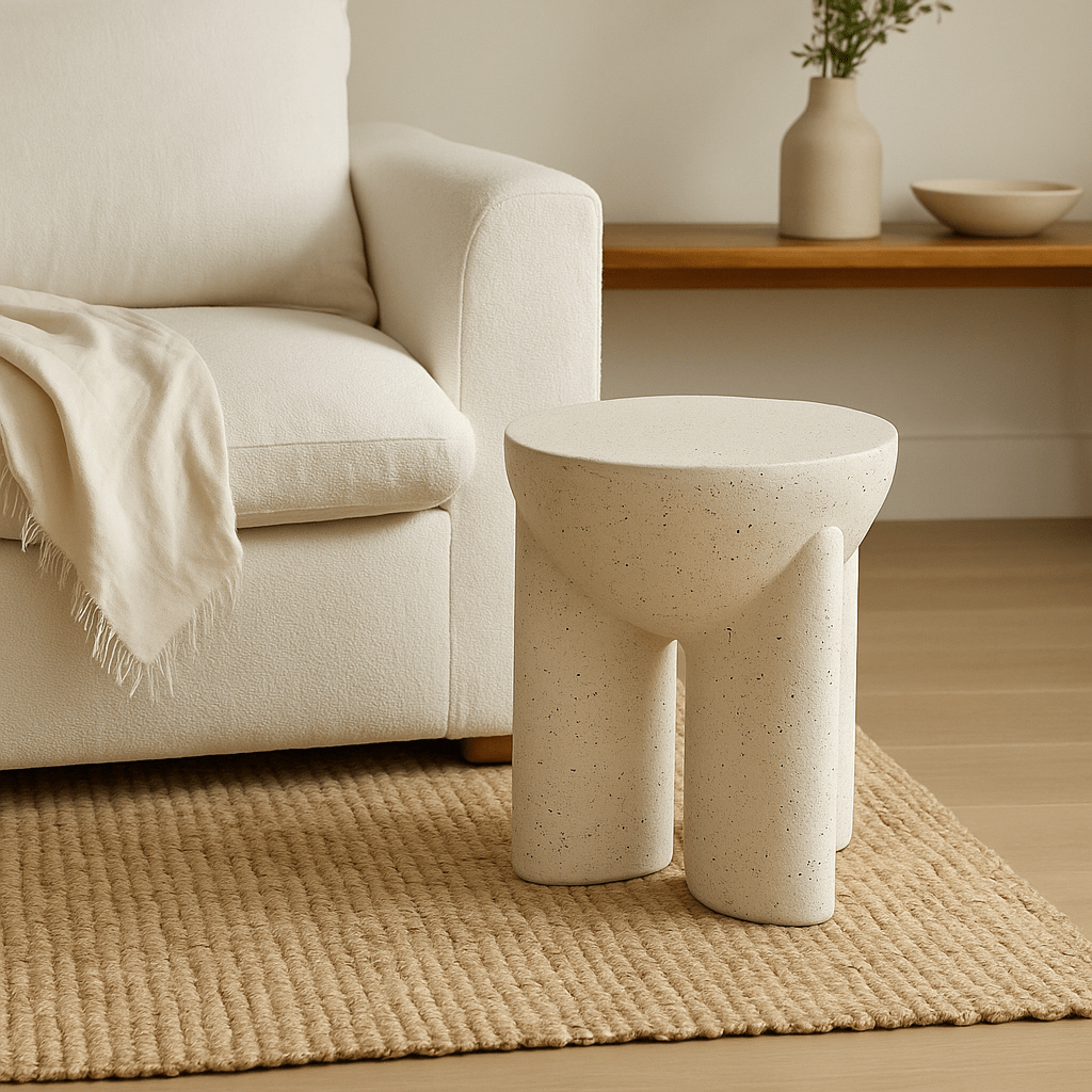 Its smooth, rounded top makes it practical for daily use, from placing coffee cups to styling small decorative trays. The concrete-style texture adds subtle character without overwhelming the space, making it suitable for modern, Scandinavian, and minimal interiors.