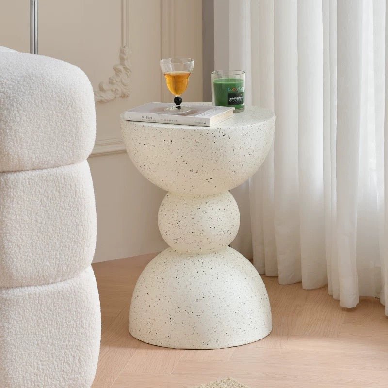 3. Stone-Finish Sculptural Side Table