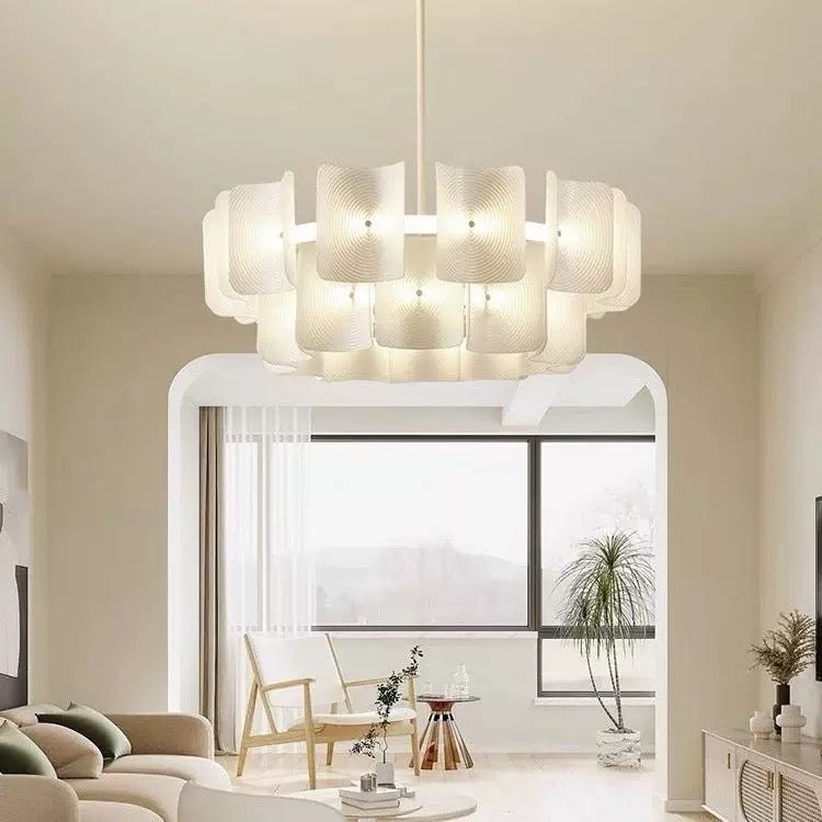 White Ripple LED Chandelier – Modern Metal & Acrylic Design with Remote Control