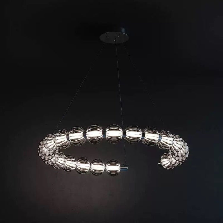 Make a bold statement in your dining or living space with this contemporary LED ring chandelier, designed to blend artistic form with functional lighting. Featuring a circular arrangement of sculptural acrylic spheres, this chandelier creates a striking floating effect while casting a soft, ambient glow throughout the room.