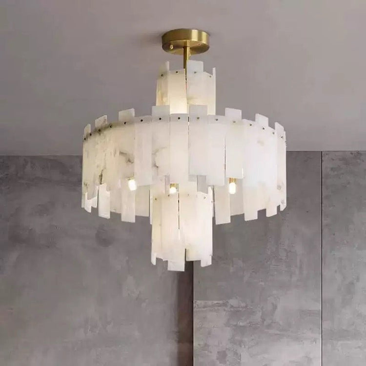 Elevate your living space with this luxurious Natural Alabaster Chandelier, a masterpiece inspired by 17th-century European palace lighting. Each panel is handcrafted from real alabaster stone, ensuring unique marble veining, soft light diffusion, and an elegant warm ambiance you can’t achieve with glass or acrylic.